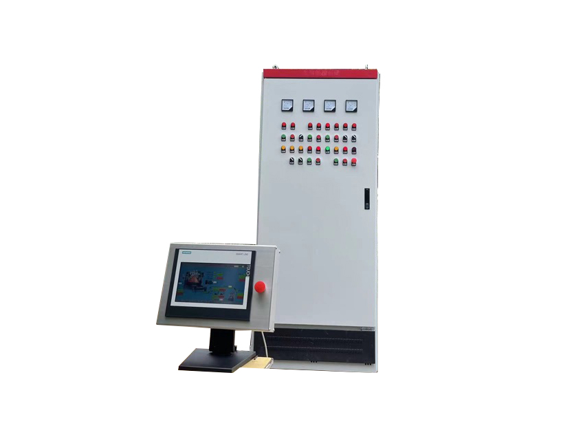 該控制柜采用西門子PLC控制;觸摸屏操作、控制、顯示為一體;具有一鍵啟動,智能化控制,電機的運行適時監(jiān)控,各電機的相關關聯(lián)控制,真正做到了關聯(lián)控制、相互制約,顯示屏具備操作功能;顯示電壓、電機電流,工作狀態(tài)參數(shù)、故障報警、自動停機等功能。
